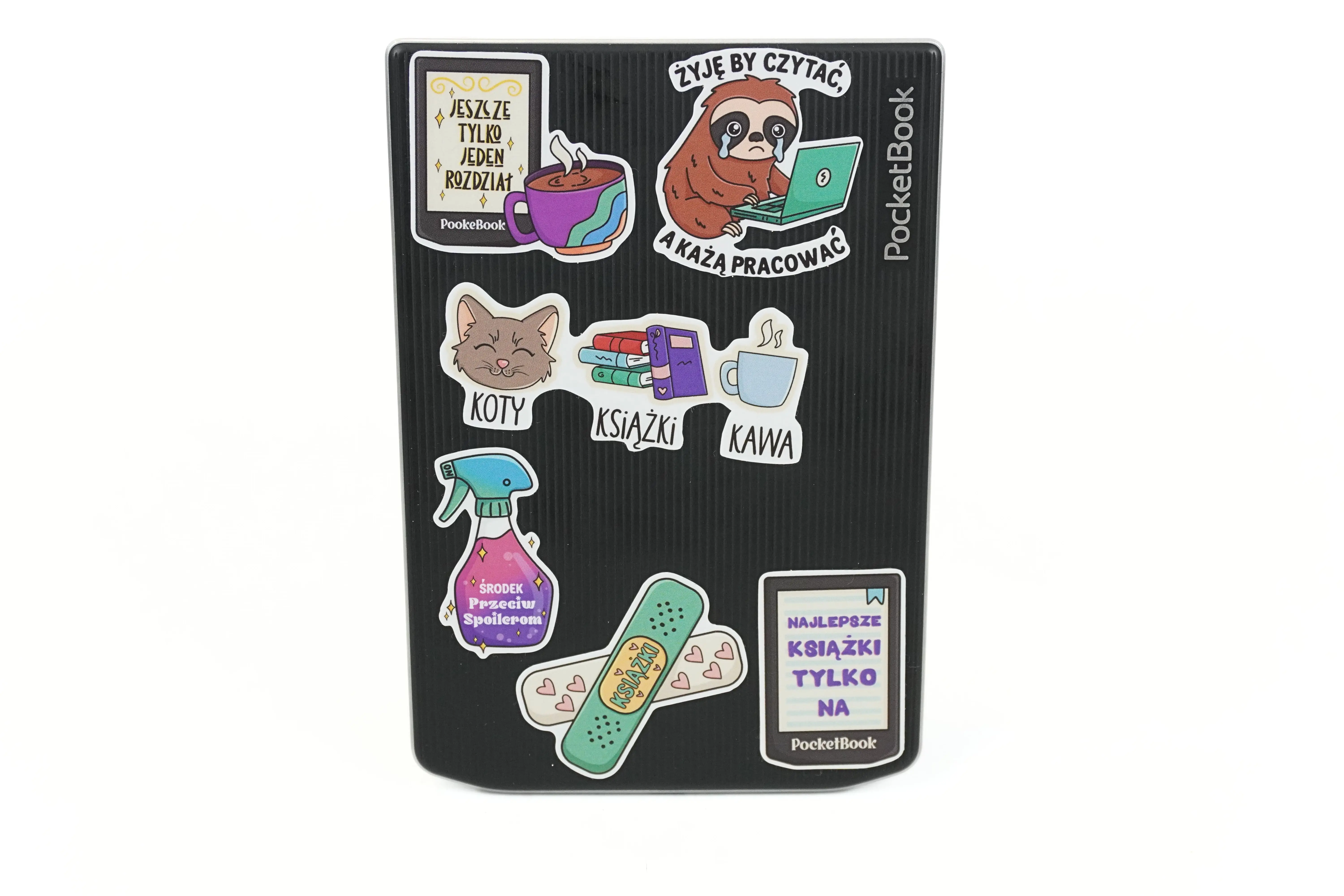Naklejki są uniwersalne, więc można nimi ozdobić nie tylko czytnik, ale też etui, kubek czy inne akcesoria związane z czytaniem. To niewielki detal, który potrafi całkiem zmienić wygląd codziennych przedmiotów i dodać im odrobiny książkowego klimatu.