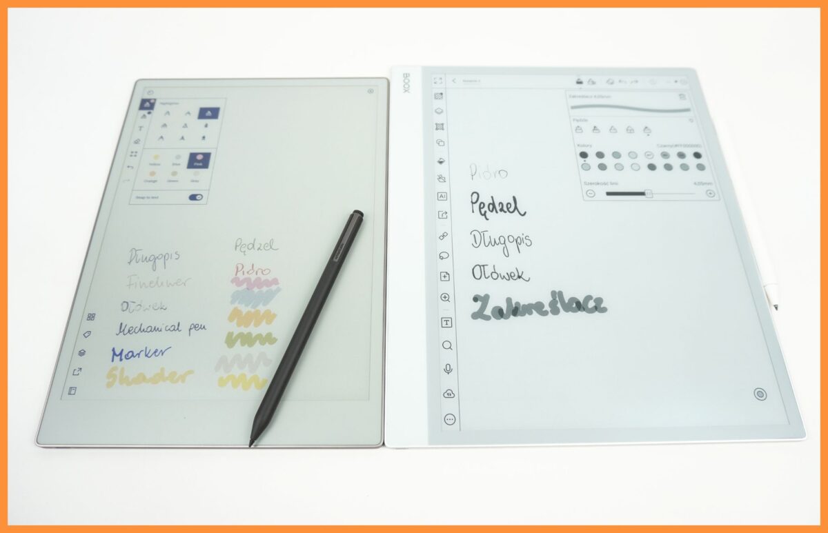 Oba notatniki można nawigować zarówno za pomocą dotyku, jak i przez obsługę rysikiem. W przypadku Onyx Boox Note Max jest to dołączony do zestawu rysik Pen Plus. Działa on bardzo precyzyjnie, a dodatkową zaletą jest to, że nie ma potrzeby jego ładowania.