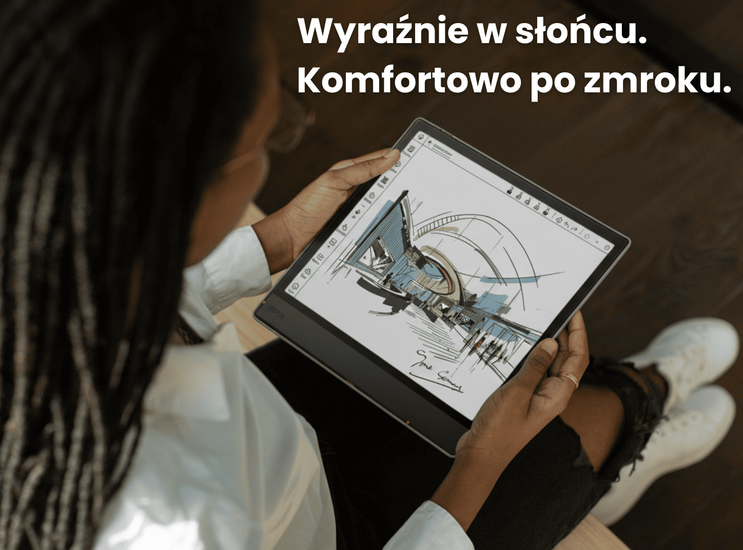 Matowy wyświetlacz E Ink Carta 1200 wiernie oddaje kontrast i fakturę papieru, zachowując pełną czytelność nawet w pełnym słońcu. Wieczorem regulowane podświetlenie z kontrolą barwy i jasności, zadba by Twoje oczy mogły odpocząć. Powierzchnia ekranu ma delikatną teksturę, dzięki której rysik nie ślizga się po niej, a każde pociągnięcie dłonią daje poczucie pracy na prawdziwym papierze.