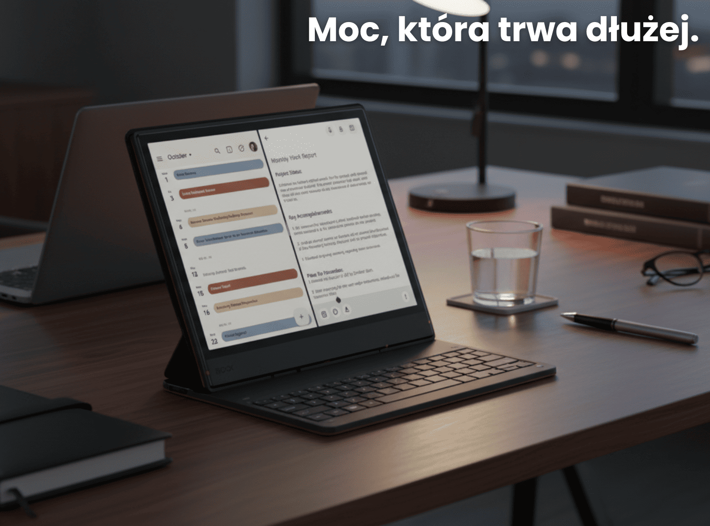 Onyx Boox Note Air 5 C wspiera Twój rytm dnia – od pierwszych notatek po wieczorne planowanie. Wydajny procesor i energooszczędny ekran E Ink pozwalają działać przez wiele dni bez ładowania. Funkcja podziału ekranu ułatwia naukę i pracę: czytasz tekst, analizujesz dane i robisz notatki jednocześnie, zachowując pełną płynność działania.