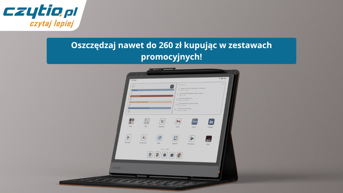 Na stronie dostępna jest specjalna zakładka z gotowymi pakietami. W sekcji zestawy promocyjne można znaleźć czytniki i e-notatniki wraz z dopasowanymi akcesoriami w korzystniejszych cenach niż przy zakupie osobno. To najprostszy sposób, aby od razu skompletować pełen zestaw dopasowany do własnych potrzeb i zaoszczędzić.