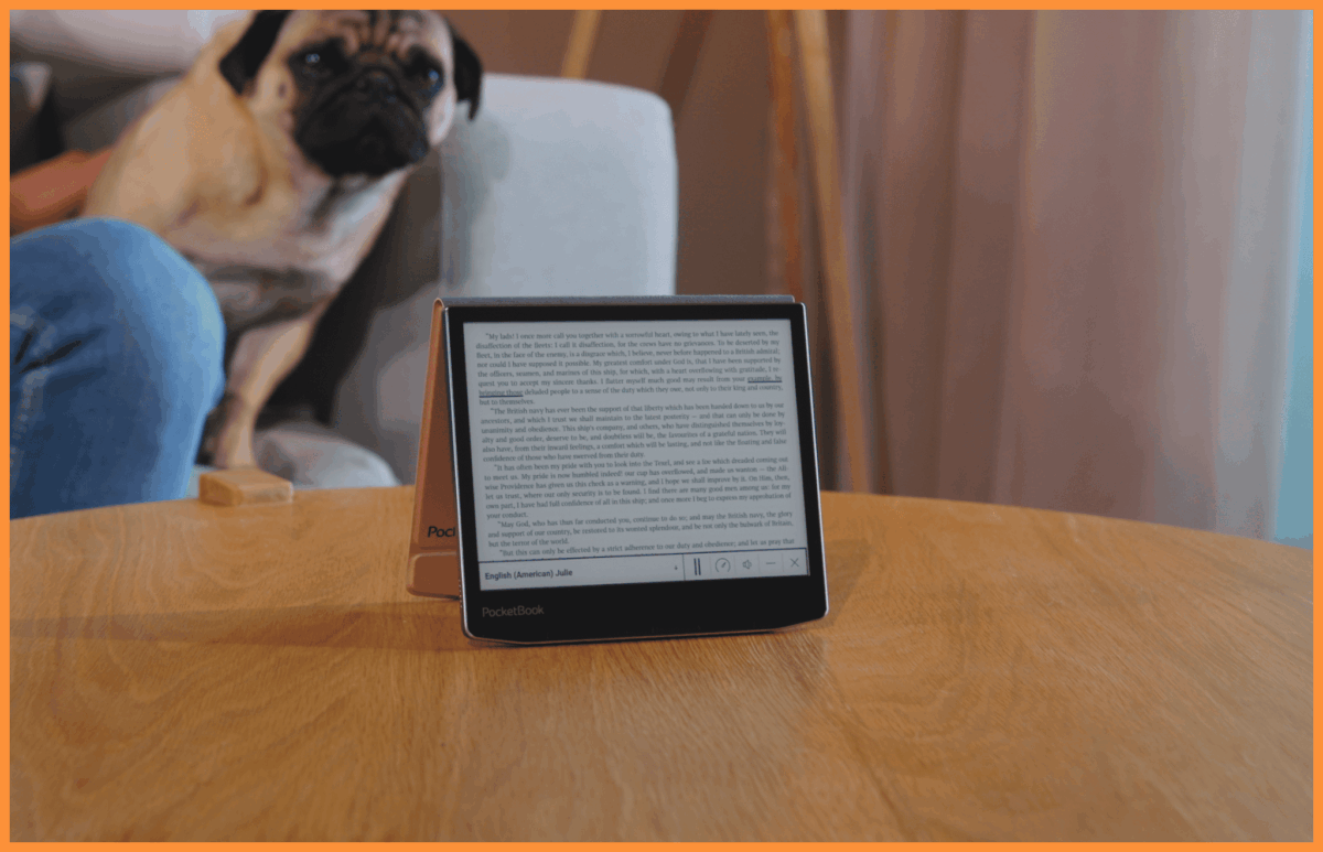 PocketBook – OpenDyslexic również dostępny fabrycznie. W ustawieniach książki znajdziesz szybkie korekty: rozmiar, interlinia, marginesy, pogrubienie, wyrównanie do lewej. SMARTlight (w wielu modelach) umożliwia regulację barwy podświetlenia.