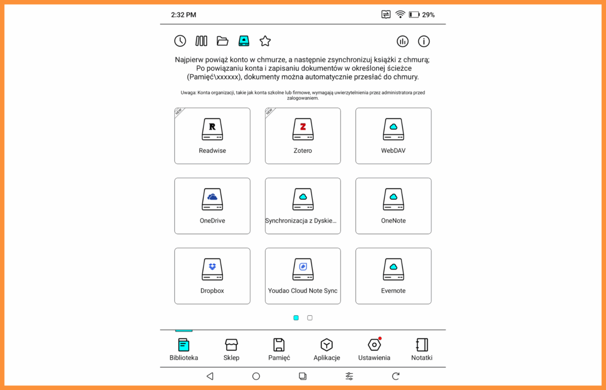 Wgrać plik EPUB/PDF do wybranego dysku w chmurze i zalogować się na czytniku do tej samej usługi (wbudowana integracja lub aplikacja dostępna w systemie). Otworzyć folder z książkami, pobrać plik i odświeżyć bibliotekę. Przy braku natywnej integracji skorzystać z przeglądarki w czytniku: wejść na stronę chmury, pobrać plik, zapisać w „Books”/„Documents”. Dla porządku trzymać katalog „Ebooks” w chmurze i nadawać plikom proste nazwy. Metoda sprawdza się idealnie, gdy książki trafiają naprzemiennie z telefonu i laptopa.