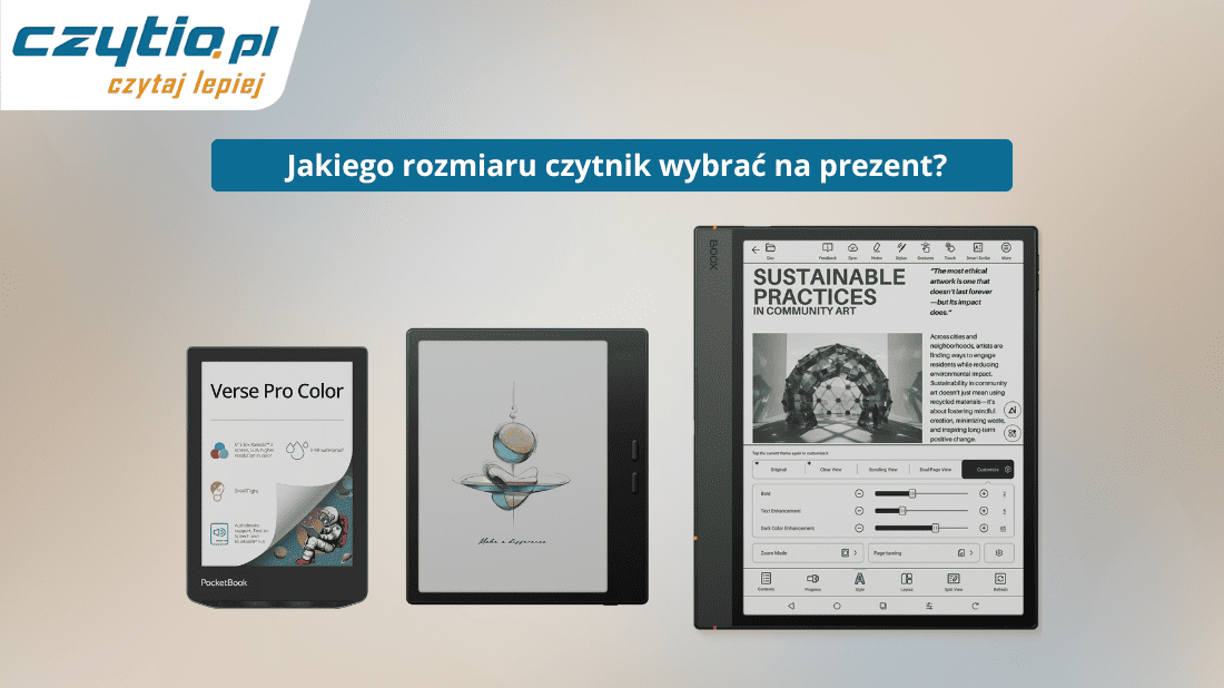 Dobierając czytnik pod kątem rozmiaru ekranu, znacznie łatwiej trafić z prezentem i dopasować go do realnych potrzeb osoby obdarowanej.