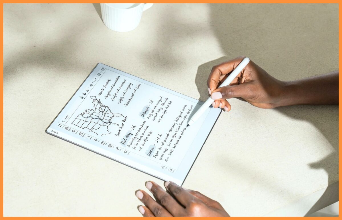 Notatniki elektroniczne marki Onyx Boox, takie jak modele Go 10.3 oraz Note Air 4 C, oferują możliwość cyfrowego pisania z odczuciami maksymalnie zbliżonymi do tradycyjnego kreślenia ołówkiem po kartce papieru. Powleczone specjalną warstwą ekrany E Ink w połączeniu z plastikowymi końcówkami rysików zapewniają przyjemne i bardzo naturalne doświadczenia dotykowe oraz dźwiękowe, które wspierają proces notowania.