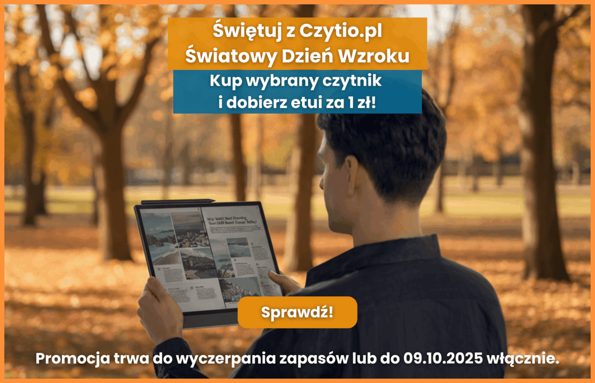 Z tej okazji przypominamy o promocji na stronie – tylko od 8 października do 9 października (lub do wyczerpania zapasów) przy zakupie czytnika PocketBook, Onyx Boox lub Kindle Colorsoft (oraz Colorsoft SE) można dobrać podstawowe etui za 1 zł. To idealna okazja, by zadbać o wzrok i komfort czytania – teraz w wyjątkowo korzystnym zestawie.