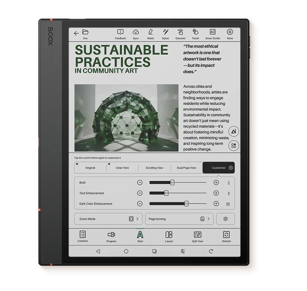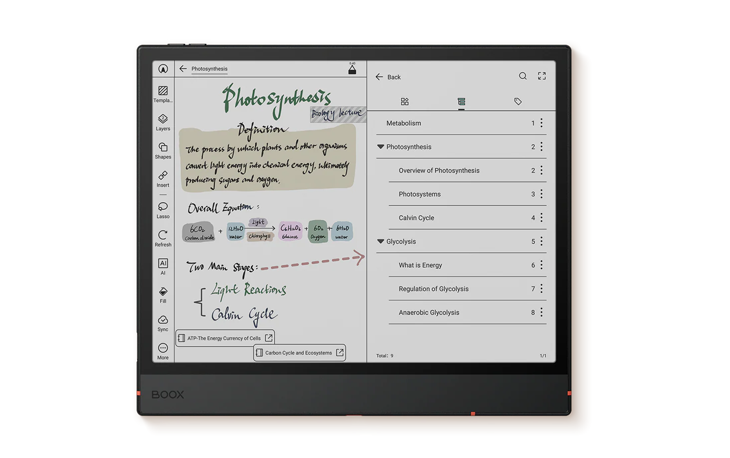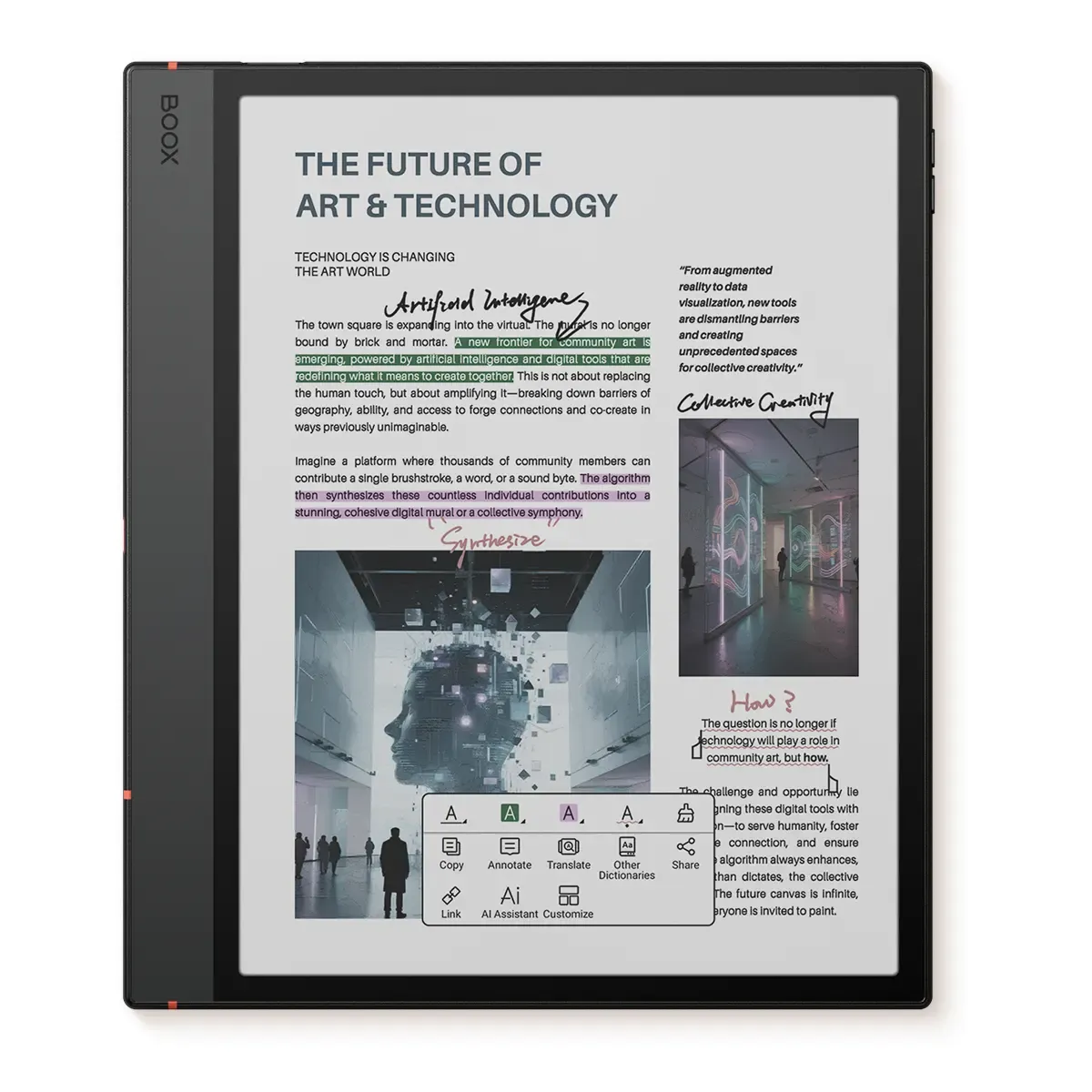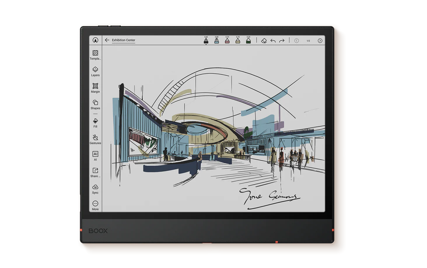 10,3-calowy ekran E ink Kaleido 3 w Note Air5 C zapewnia zapierające dech w piersiach realistyczne kolory i wyraźne szczegóły, jednocześnie będąc delikatnym dla oczu. Burza mózgów, przeglądanie raportów i praca na kolorowym płótnie, które jest genialne, podobne do druku i responsywne.