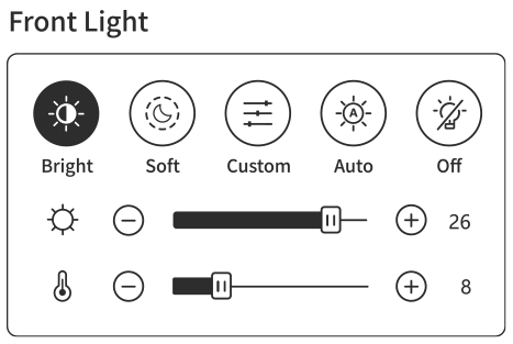 Czytaj wygodnie ulubione treści w dzień i w nocy dzięki regulowanemu przedniemu podświetleniu (jasność i barwa). Matowy ekran E Ink pozostaje czytelny w pełnym słońcu, a wieczorem ciepła lub chłodna tonacja światła pomaga utrzymać komfort wzroku. Wysoki kontrast i ostre litery sprzyjają długiej, spokojnej lekturze, jednocześnie dbając o zdrowie twojego wzroku.