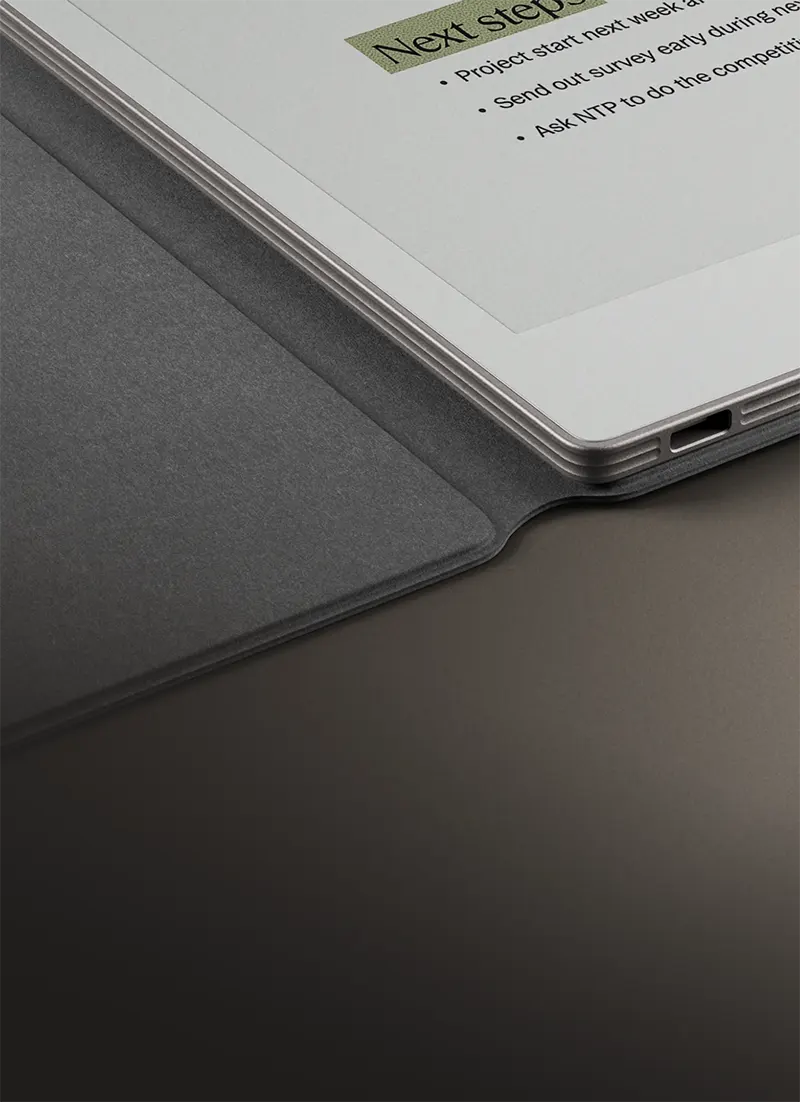 Każdy element reMarkable Paper Pro został starannie dobrany, aby zapewnić trwałość, wygodę użytkowania i elegancki wygląd. Wysokiej jakości materiały sprawiają, że tablet reMarkable stanie się niezawodnym narzędziem, które posłuży przez lata.