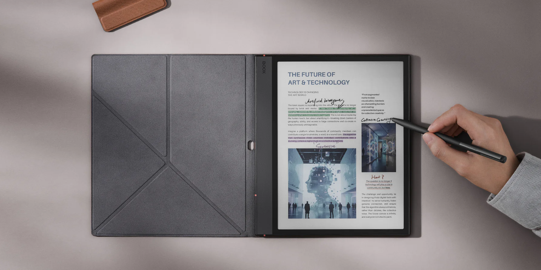 Nowy Onyx Boox Note Air 5 C to kontynuacja dobrze znanego modelu Note Air 4 C. Czytnik zachowuje ten sam rozmiar, ekran i konstrukcję, dlatego akcesoria z poprzedniego modelu są w pełni kompatybilne. Pasują te same etui, końcówki do rysika oraz folia ochronna DooDroo. W zestawie znajduje się nowy rysik BOOX Pen 3, który w odróżnieniu od swojego poprzednika został wyposażony w skuwkę z miejscem na przechowywanie zapasowych końcówek. Rysik zapewnia jeszcze lepsze wrażenia podczas pisania i notowania.
