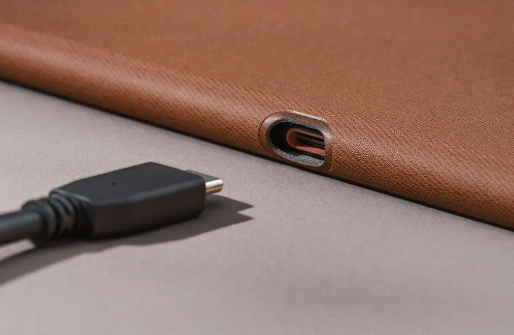 Precyzyjne wycięcie przy porcie USB-C pozwala ładować Note Air 5 C bez zdejmowania okładki.