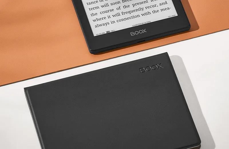 Wystarczy umieścić Onyx Boox Go 6 w etui by poczuć, jak mocno jest przymocowany. Silne magnesy gwarantują pewne i dokładne dopasowanie, dzięki czemu czytnik zawsze pozostaje na miejscu. Dodatkowo, czytnik jest automatycznie wybudzany po otwarciu okładki, co zapewnia natychmiastowy dostęp, oraz usypiany podczas zamykania etui, dla zaoszczędzenia baterii.