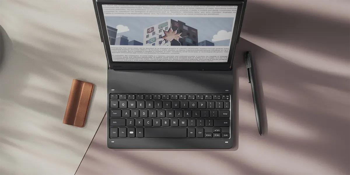 Magnetyczne etui z klawiaturą ściśle przylega do Note Air 5 C, chroniąc go z przodu i z tyłu, a jednocześnie zachowując smukły i elegancki profil. Klawiatura została wyposażona w pełny rząd 14 klawiszy funkcyjnych oraz port USB-C umożliwiający ładowanie przelotowe. Dzięki temu jedno akcesorium pozwala zamienić Note Air5 C z miejsca do szkicowania i notowania w wszechstronne środowisko pracy, które usprawnia każdą twórczą aktywność.